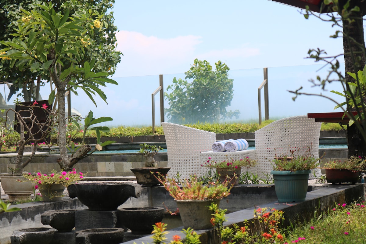 Our villa is only 100 steps away from a beautiful beach where you can take a long walk, a swim or sit waiting for the sun to set over Bali. We are only 7 minutes by car from tourist center of Senggigi where restaurants and bars are located and only 10 minutes away from the Harbour to the Gili islands . Our room is large and is air conditioned. You can enjoy breakfast at our pool side. Water dispenser is available with tea/instant coffee for you at anytime. Transportation is available 24 hours.