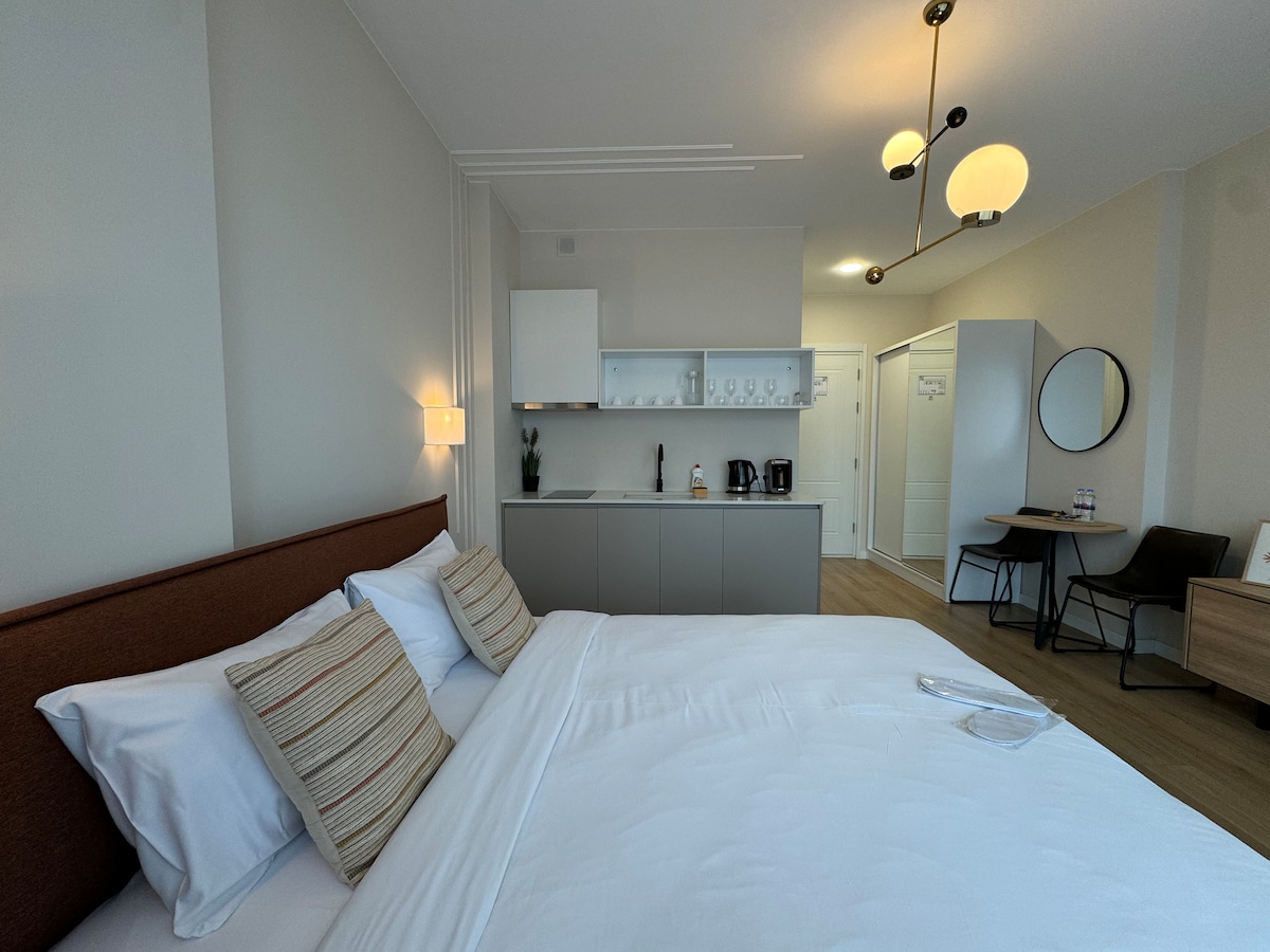 Căn hộ 1 phòng ngủ hiện đại • Tầm nhìn ra biển và thành phố • Netflix • Wi-Fi nhanh Căn hộ phong cách tại Alliance Palace (tầng 26) với ban công toàn cảnh, giường cỡ queen, giường sofa, TV thông minh (Netflix), nhà bếp đầy đủ tiện nghi và sàn sưởi. Chỉ cách bãi biển và hồ 100m. Hoàn hảo cho cặp đôi, gia đình, người làm việc từ xa và chỗ ở phù hợp với thú cưng.