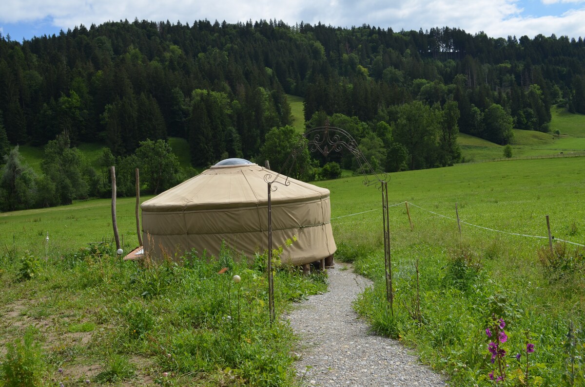 Thiên nhiên thuần khiết! Nghỉ đêm trong lều yurt kỳ lạ của chúng tôi ở Allgäu xinh đẹp. Ở rìa của ngôi làng nhỏ trong một khu định cư mới nổi, tại ngôi nhà mới nổi của chúng tôi là lều yurt nhỏ xinh đẹp của chúng tôi. Đây là một nơi tuyệt vời để thư giãn khỏi cuộc sống căng thẳng hàng ngày và đắm mình trong thiên nhiên. Ngôi làng được khám phá bởi rừng và đồng cỏ và trên Camino de Santiago. Ngọn lửa trại để kết thúc buổi tối và bồn tắm ngoài trời đảm bảo những giờ gợi cảm dưới những vì sao.