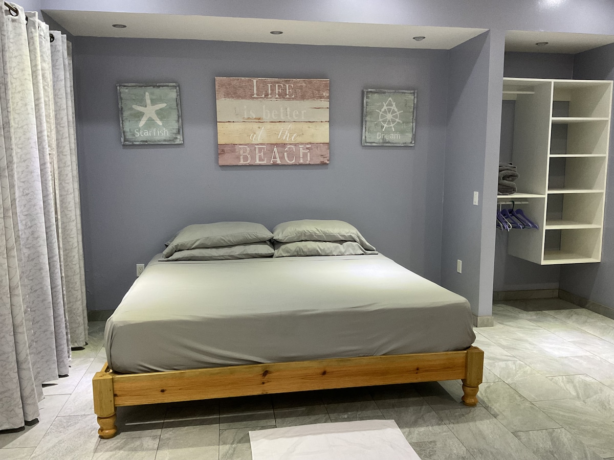 Tận hưởng thời gian lưu trú thoải mái và riêng tư trong căn phòng này với giường cỡ king, phòng tắm riêng, tủ quần áo, điều hòa không khí và TV. Nằm bên trong một căn hộ ở Sandy Bay, trong một cộng đồng riêng tư với quyền ra vào được kiểm soát và an ninh 24/7. Bao gồm bãi đỗ xe riêng và quyền sử dụng hồ bơi cộng đồng. Chỉ cách bãi biển và Câu lạc bộ bãi biển Sol y Mar 4 phút đi bộ, dễ dàng đi đến West End, West Bay và các siêu thị. Tuyệt vời cho các cặp đôi hoặc du khách tìm kiếm sự yên tĩnh và thoải mái.