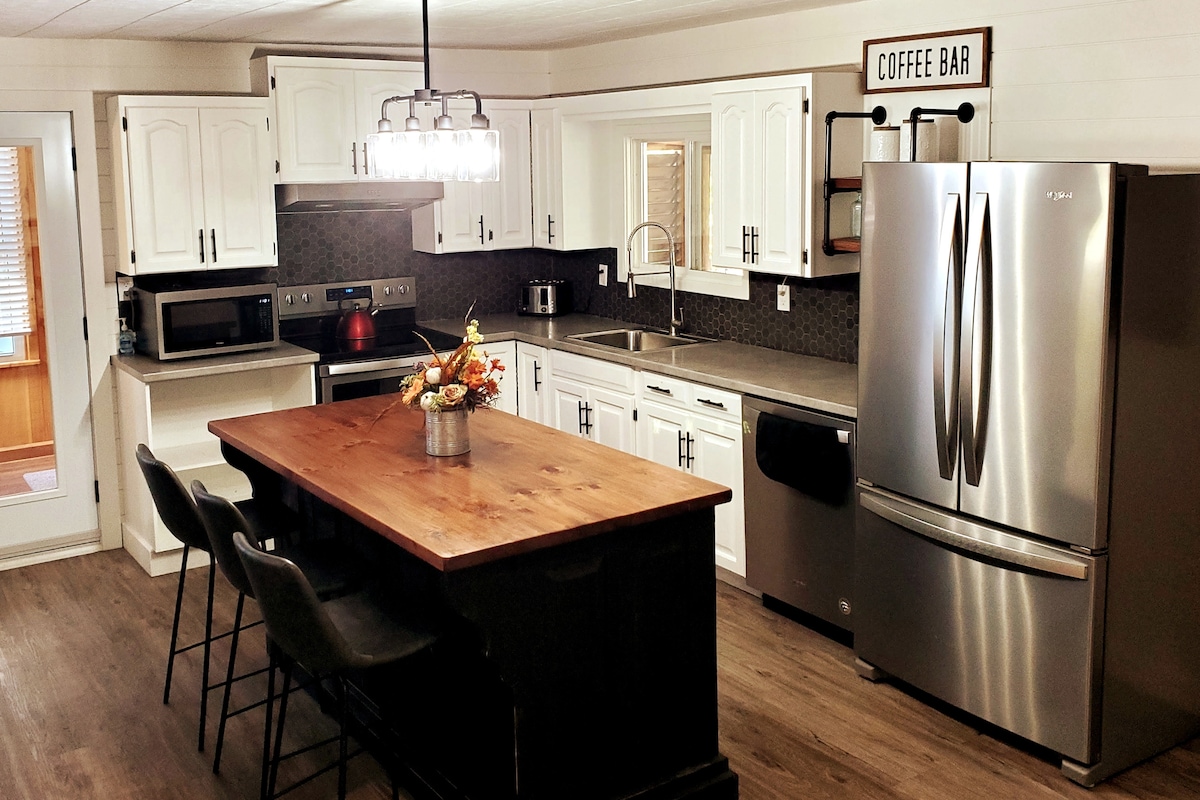 Nhà nghỉ thôn dã phía trước hồ sang trọng mới được cải tạo! Tận hưởng khung cảnh hoàng hôn đẹp nhất từ sân sau. Lối ra bãi biển riêng! Không gian sống theo phong cách trang trại hiện đại tuyệt đẹp. Hai nhà vệ sinh được cải tạo hoàn toàn với gạch đá cẩm thạch trong suốt. Thoải mái ngủ 8 giờ! Đừng bỏ lỡ cơ hội tận hưởng bãi biển này và những tầm nhìn này. Xin lưu ý giá bao gồm phí vệ sinh bổ sung để tuân thủ quy trình vệ sinh CODVID và khử trùng nhà nghỉ thôn dã đúng cách khi trả phòng.