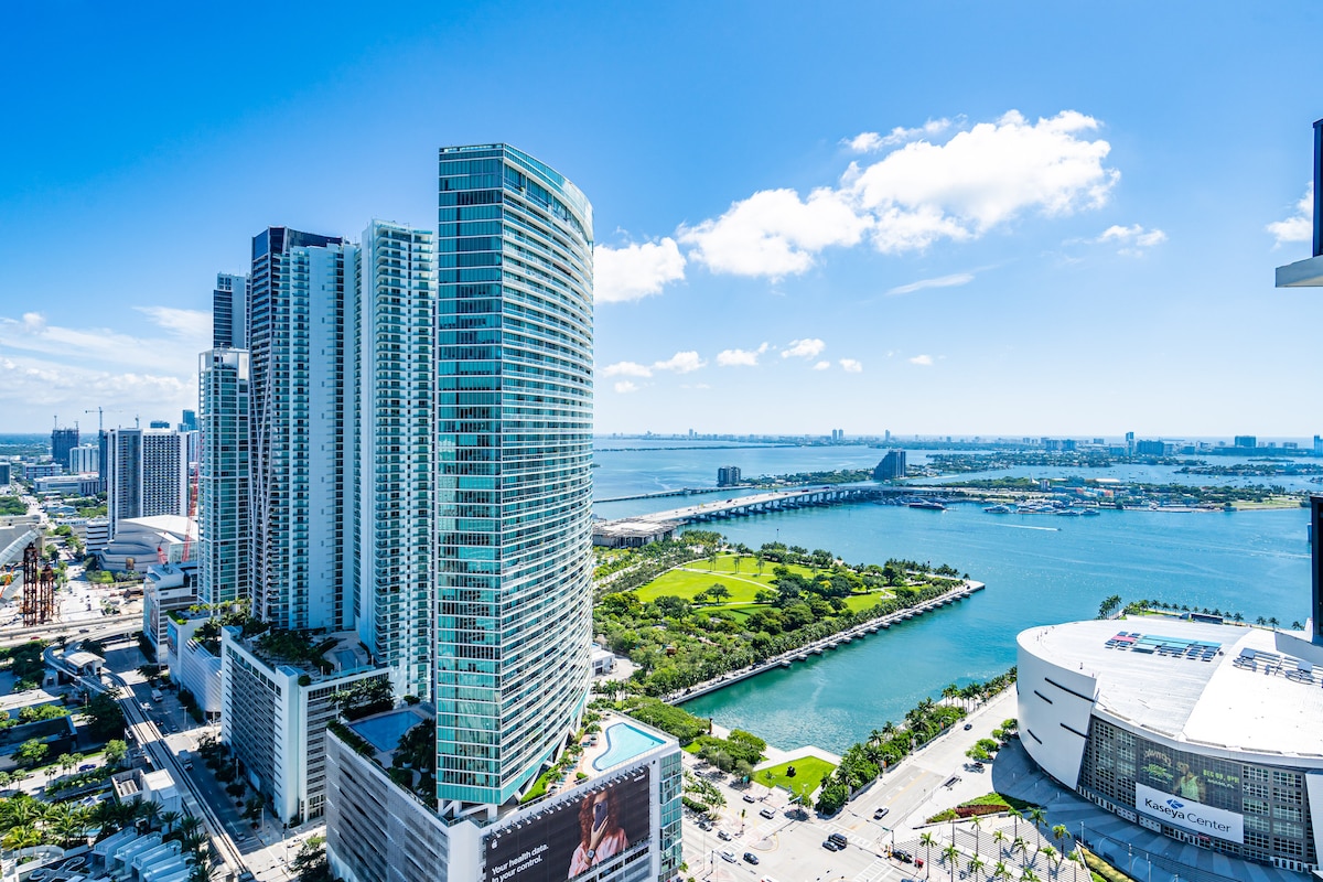 * Tầm nhìn tuyệt vời *, * Vị trí hàng đầu * Căn hộ 2 phòng ngủ với tầm nhìn tuyệt đẹp, ban công mở (không xây dựng) từ tầng 47 của Icon Brickell sang trọng. Ngay cạnh Vịnh Biscayne xinh đẹp, Brickell Key, nhà hàng, câu lạc bộ và khu mua sắm. Đi bộ dễ dàng đến trung tâm Kaseya và Công viên BayFront. Căn hộ cao cấp đầy đủ tiện nghi lãng mạn này cung cấp cho bạn tầm nhìn toàn cảnh vịnh và đường chân trời Brickell, ngắm bình minh và hoàng hôn từ ban công, phòng khách và phòng ngủ chính của bạn.