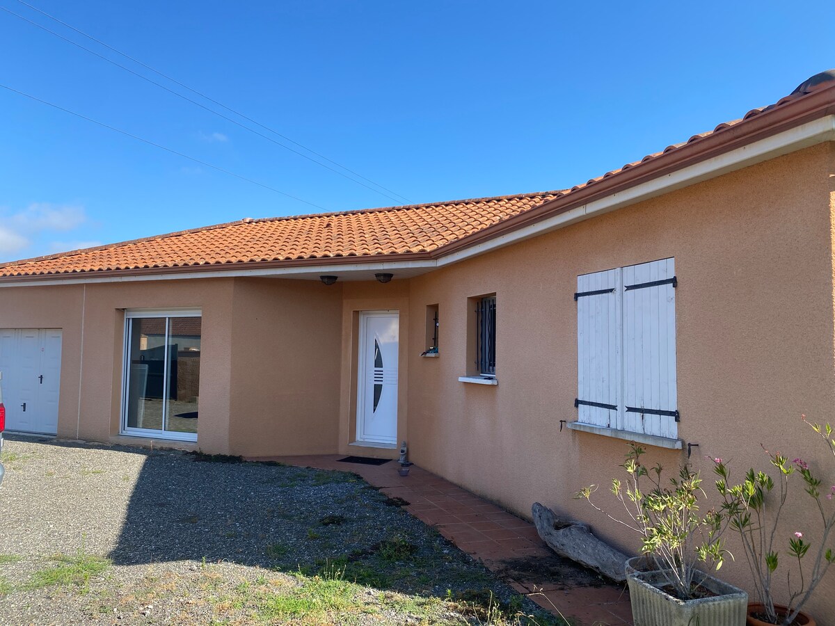 Bienvenue chez vous! Une annexe de notre maison (50m2) vous est entièrement dédiée pour un vrai moment de détente! Une entrée indépendante avec terrasse privative de 18m2 , salon de jardin, barbecue pour des moments de partage en famille ou entre amis. Décorée avec goût, vous disposez d’une cuisine équipée ouverte sur salon, 2 chambres à l’étage avec salle de bains et wc. Ce logement est situé dans la cour intérieure de notre habitation principale, maison typique bigourdane.