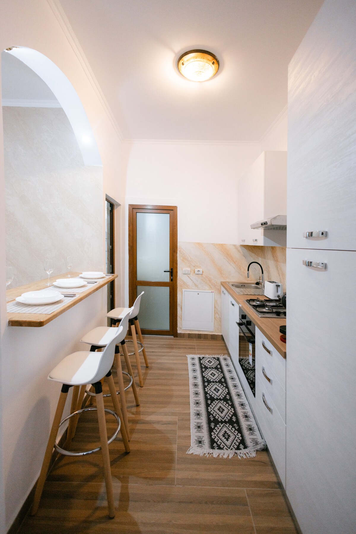 Newly remodeled apartment in the heart of the historical center of the town of Fagaras. Very cozy and well equipped in order to offer our guests a pleasant stay. The place it's meters away from the fortress, cathedral, restaurants, coffee shops and convenient stores. The town offers a strategic position to visit the south part of Transylvania. The cities of Brașov, Sibiu and Sighișoara are all one hour away from Fagaras. The famous Transfăgărășan road over the mountains is half hour away.