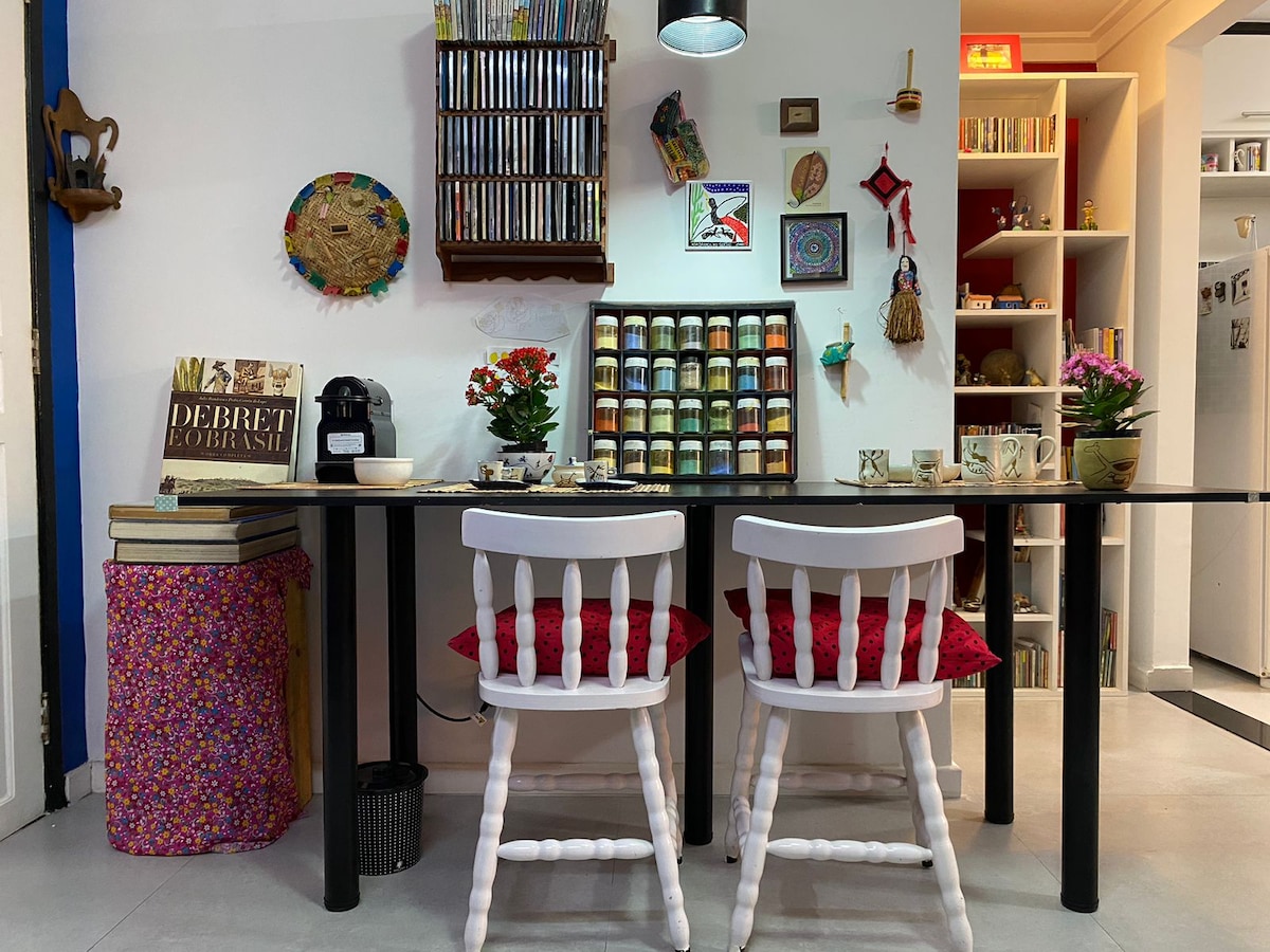 Mở cửa và bước vào… "Uh uh, que beleza" ngay trung tâm của khu rừng bê tông. Không khí xanh và ấm cúng bộc lộ nhịp điệu Brazil của kỳ nghỉ này. Mỗi góc đều mời bạn cảm nhận, mơ mộng và được truyền cảm hứng bởi những âm thanh của các tác phẩm kinh điển Brazil trên đĩa vinyl. Đây là chỗ ở của bạn, để làm việc hoặc để trải nghiệm São Paulo, bởi vì có tình yêu ở SP. Ngôi nhà rung động với sự sống, với sự tươi mới của cây cối, thơ ca của sách vở và nhịp điệu nhẹ nhàng của bossa đi kèm với mọi khoảnh khắc.