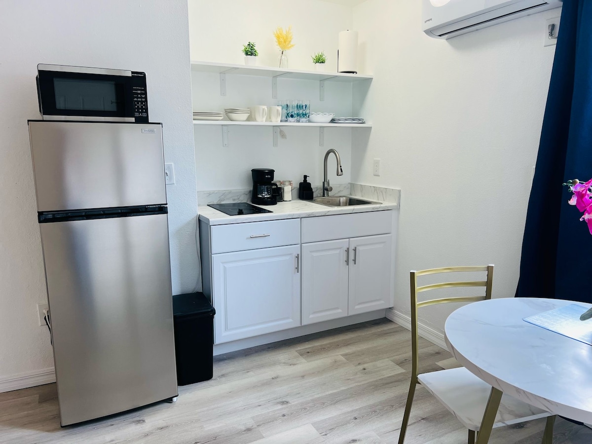 Welcome to our cozy studio! Attached to the Main House with its own Private Entrance! Ideal for couples, it features a comfortable queen-size bed, a full bathroom, and a small kitchen equipped with everything you need for a fantastic stay✨ Enjoy your own private patio complete with a BBQ grill and beach gear for your convenience. Relax and unwind with a TV for your entertainment. We offer 1 designated parking spot Located 18 mins from Siesta Key, 23 mins from Lido Key & 1.5 miles from I-75😎