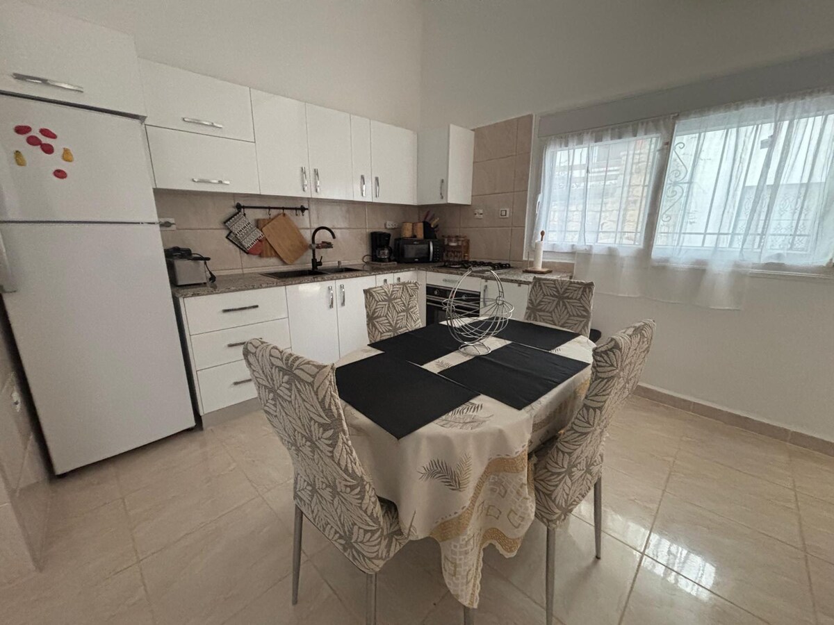 Chào mừng đến với Béjaïa! 🌊☀ Chỗ ở gần tất cả các tiện nghi, 6 phút đi bộ đến các hiệu thuốc, tiệm bánh, thực phẩm, thuốc lá, v.v. Sau này bao gồm 2 phòng ngủ có thể chứa 2 người mỗi phòng và một phòng khách lớn được trang trí bằng bích họa và lò sưởi. (Đối với hơn 2 người, dự kiến sẽ phải trả thêm € 8 mỗi người mỗi đêm) Bếp được trang bị các tiện nghi thiết yếu: dụng cụ nấu ăn, bếp, tủ lạnh, máy giặt. Và cuối cùng là một phòng tắm.