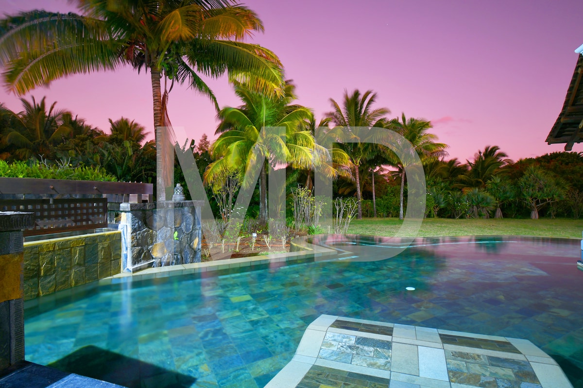 Au pied de la montagne du Morne, vue sur le golf du Paradis et le lagon de l’île aux Bénitiers. À trois minutes en voiture de la plage (restaurant, boat house) et 5mn de One Eye (spot de kitesurf). Villa offrant trois chambres doubles en suite et un dortoir pour 5 enfants. La vie s’organise autour de la piscine et de la varangue (salon, salle à manger, cuisine d'extérieur). Une employée de maison est incluse dans le prix (4 heures par jour).