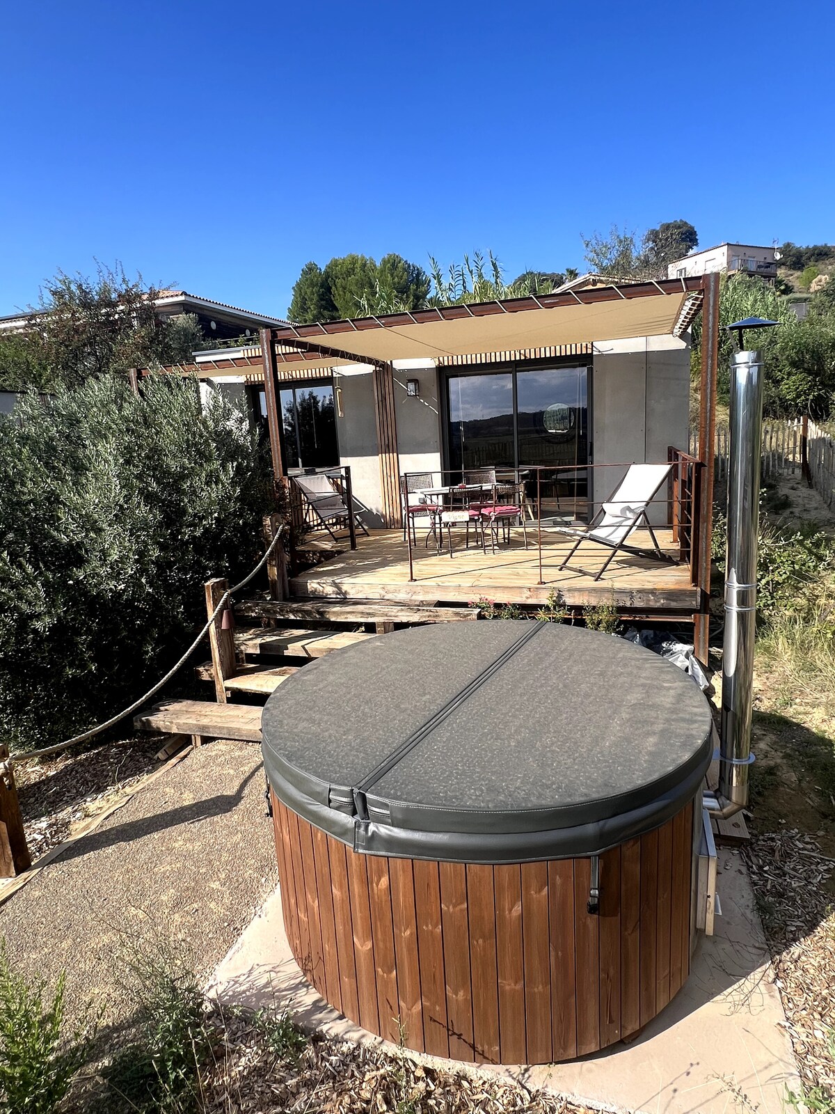 Một ốc đảo yên bình, nơi thiết kế hiện đại và thiên nhiên gặp gỡ. Nhà nghỉ của chúng tôi mang đến sự thoải mái hiện đại trong khi vẫn tôn trọng môi trường. Tận hưởng bồn tắm Thụy Điển riêng dưới những vì sao và tận hưởng sự yên tĩnh của thiên nhiên từ sân thượng của bạn. Tận hưởng quyền sử dụng sân bocce miễn phí và đặt dịch vụ mát-xa để thư giãn. Hoàn hảo cho một kỳ nghỉ lãng mạn hoặc nghỉ ngơi chăm sóc sức khỏe, nhà nghỉ của chúng tôi kết hợp sự thanh lịch, vật liệu thân thiện với môi trường và một khung cảnh nhẹ nhàng.