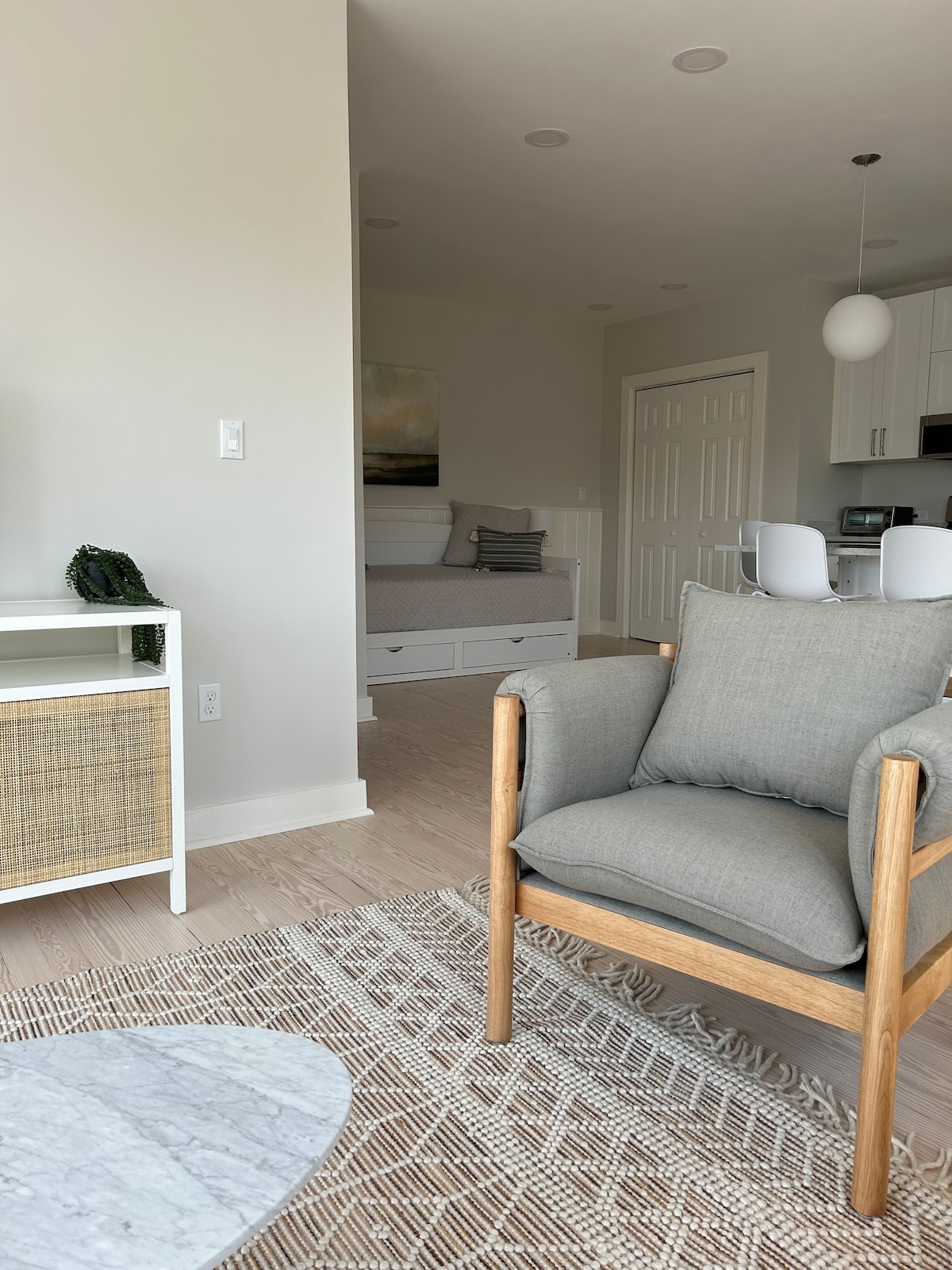 Căn hộ lấy cảm hứng từ Paris thanh lịch lý tưởng cho một cặp vợ chồng ngay trung tâm thành phố ven biển Belfast, Maine quyến rũ. Tận hưởng trải nghiệm đầy phong cách và thoải mái tại địa điểm trung tâm thành phố này, cách các nhà hàng, cửa hàng và bờ sông/đường mòn tuyệt đẹp vài bước chân. Bãi đỗ xe công cộng qua đêm miễn phí/an toàn cách đó 250 feet. Giường được làm, bàn được đặt, có một đài phát thanh cổ điển, trò chơi và TV thông minh hỗ trợ Bluetooth.