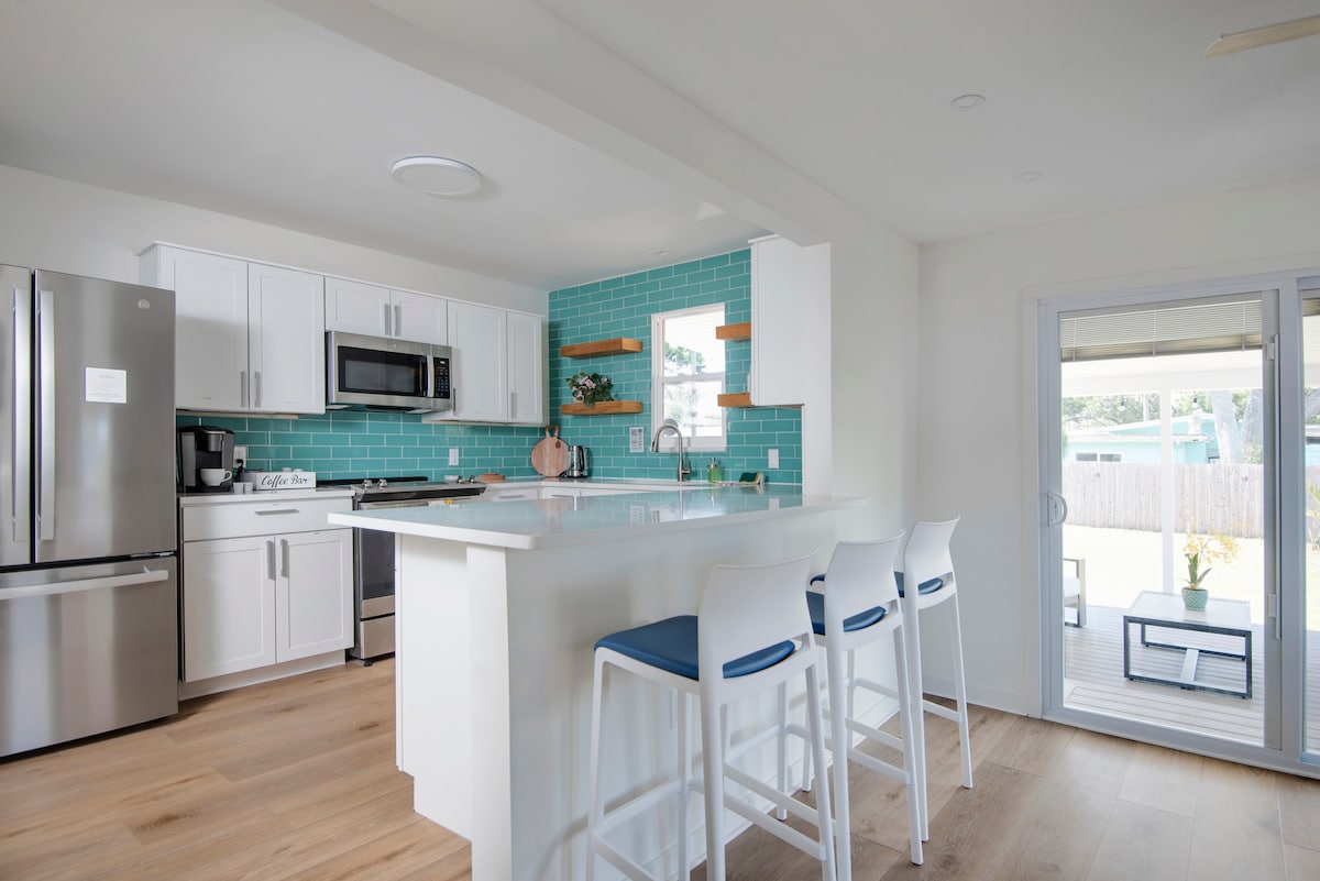 Chào mừng bạn đến với ngôi nhà mới được xây dựng của chúng tôi! Với gạch trắng thượng hạng tuyệt đẹp, trần 9ft và các chi tiết hiện đại nhưng quyến rũ. Đặc biệt thoải mái cho chuyến đi đến Clearwater Beach của bạn! Nằm ở vị trí thuận tiện cách cả Bãi biển Clearwater và Bãi biển Belleair 12 phút! Những điều bạn sẽ yêu thích: - Sân hiên rộng rãi với đèn đẹp, vỉ nướng và võng 2 người! - Phòng khách được trang bị TV Roku 65', sách trẻ em và trò chơi trên bàn - Bàn ghế làm việc công sở -220+ mbps WiFi - Đồ dùng nhà bếp