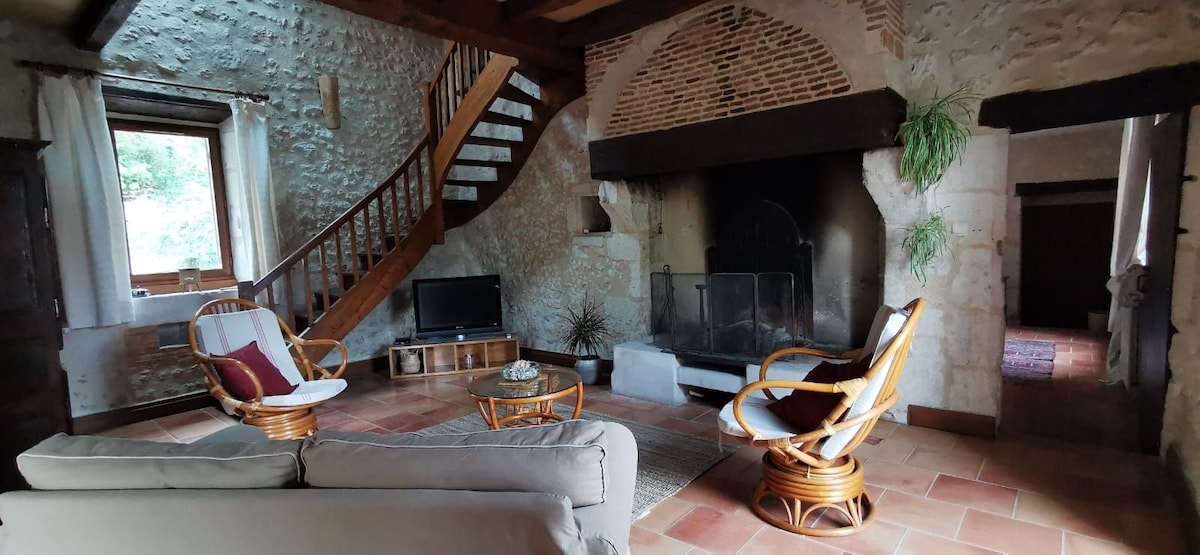 Ở trung tâm của những vườn nho phía nam Charente, ngôi nhà xinh đẹp này là một phần của một vườn nho cũ. Một thiên đường yên bình và yên tĩnh, chỗ ở (120 m2) hoàn hảo cho một kỳ nghỉ thư giãn và khám phá khu vực xinh đẹp của chúng tôi. Trên một sườn đồi giữa những vườn nho xinh đẹp của phía nam Charente, ngôi nhà riêng đáng yêu này là một phần của một khu vườn nho trước đây. Một nơi ẩn náu hoàn hảo cho một chuyến thăm thư giãn, ngôi nhà 120m2 rộng rãi, yên bình và lý tưởng để khám phá khu vực đáng yêu này.