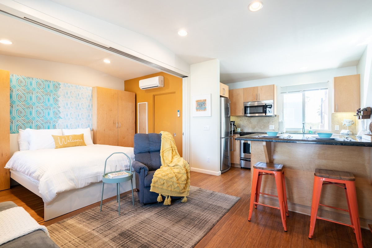 Căn hộ BaySide hiện đại đã được cải tạo, cách bãi biển, Vịnh Mission, Công viên Belmont, nhà hàng, nhà cho thuê và các hoạt động trên bãi biển 1 dãy nhà Với 1 phòng ngủ với giường cỡ queen với điều hòa không khí trong phòng, 1 phòng tắm, chỗ ngồi thoải mái trong khu vực sinh hoạt với quạt, nhà bếp đầy đủ tiện nghi với các thiết bị bằng thép không gỉ và mọi thứ khác bạn cần để chuẩn bị một bữa ăn ngon + Khu vực ăn uống riêng biệt với chỗ ngồi. Khu vực chỗ ngồi ngoài trời với bếp nướng BBQ và lò sưởi. Chỉ phù hợp với 2 người lớn.
