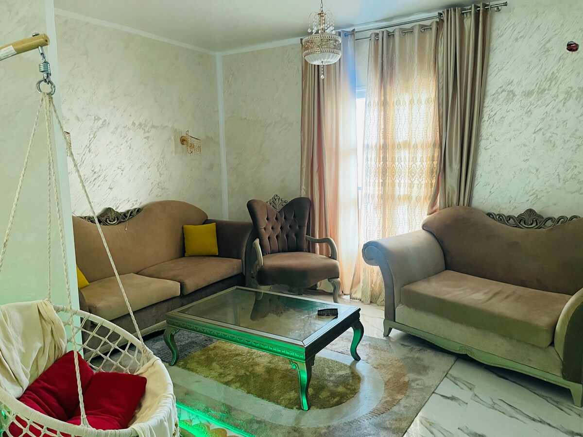 on aura le plaisir de vous accueillir dans notre appartement équipé d'un grand séjour , une chambre a coucher spacieuse cuisine bien équipé et dune salle de douche moderne on a le chauffage le climatiseur télévision une lave linge Wifi en fibre optique tout ca dans une résidence neuve bien sécurisé avec des cameras de surveillance et gardien et bien placée autour des commerces restaurent endroit vivant et au même moment calme quand on est chez soi !Hola !! bienvenue !!مرحبا !!welcome