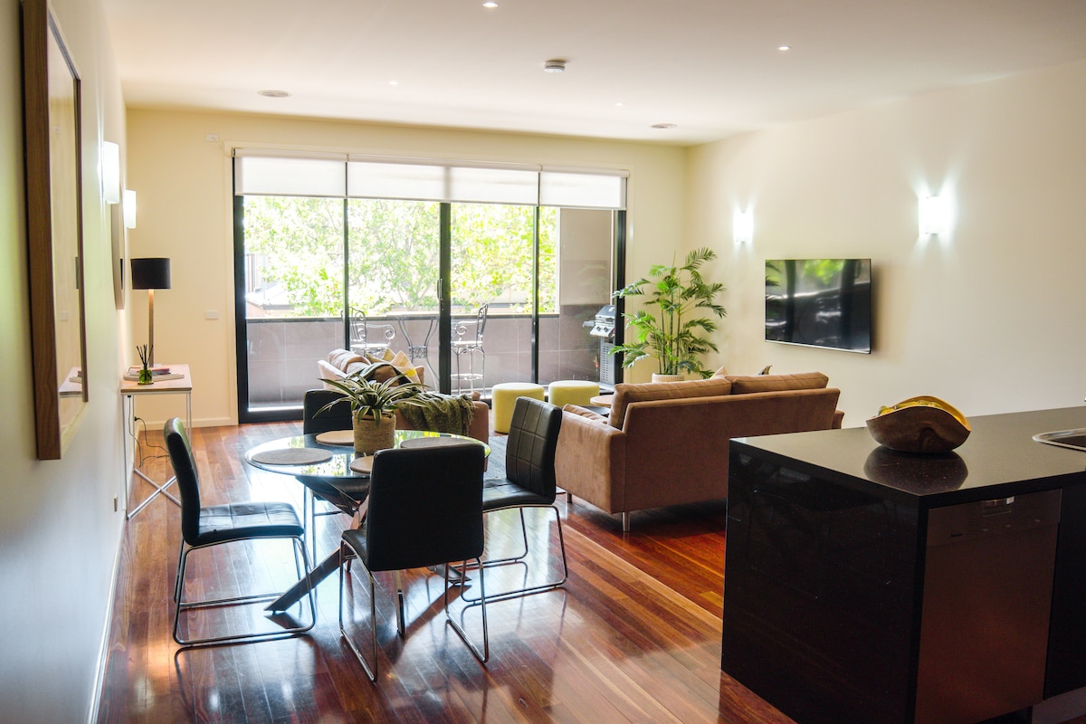 Căn hộ hai phòng ngủ rộng rãi, hiện đại và cực kỳ thoải mái, tầng 1 nằm ngay trung tâm Bendigo CBD, trên View Street Artsinct. Hai phòng ngủ, mỗi phòng có phòng tắm riêng, một phòng có vòi sen và phòng có bồn tắm spa. Tách biệt nhà vệ sinh và thiết bị giặt ủi. Ban công riêng với BBQ, bãi đỗ xe ngầm và lối vào đường phố ngay cạnh các quán bar, quán cà phê và nhà hàng tuyệt vời nhất Bendigo. Chỗ ở có WIFI nhanh, nhiều ánh sáng tự nhiên và rất rộng rãi. Báo chí Pháp có sẵn để sử dụng.