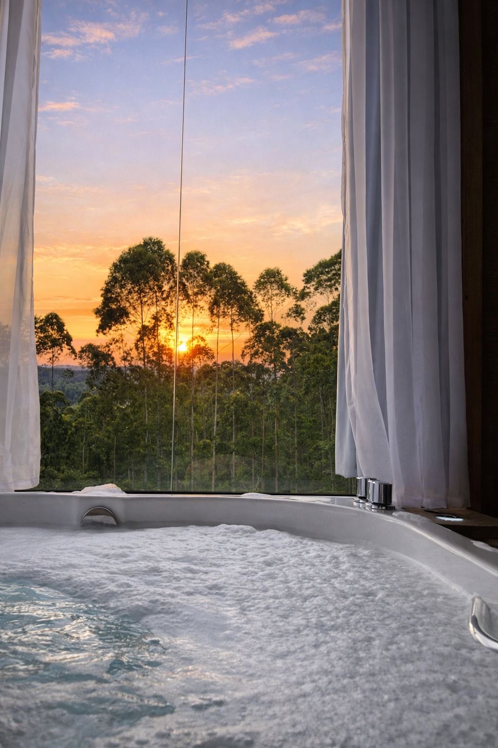 Cabin điều hòa không khí với bồn tắm nước nóng và tầm nhìn ra thiên nhiên