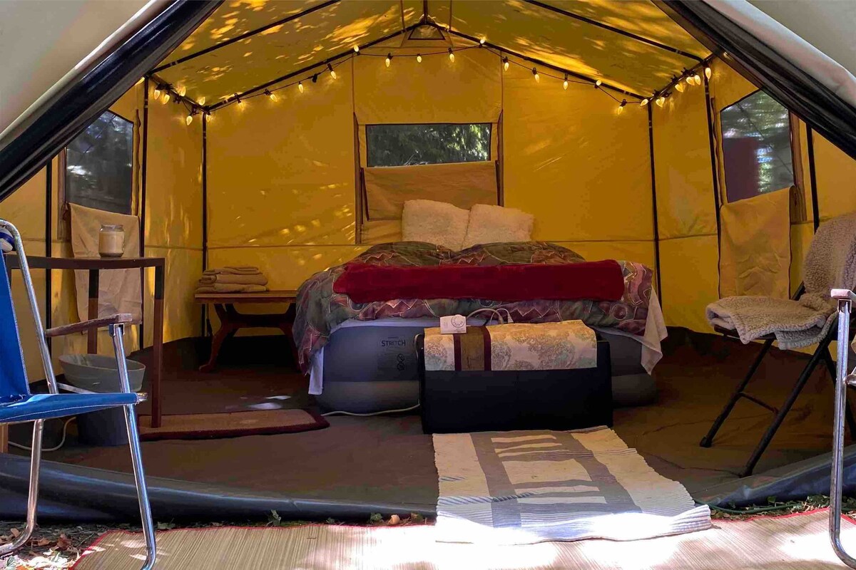 Hãy tận hưởng sự ấm cúng và hòa mình vào địa điểm mộc mạc, lãng mạn này trong tự nhiên. Rustic và lãng mạn cho những ai muốn cảm thấy thoải mái ngoài trời. Bồn tắm nước nóng, hố lửa, BBQ, nhà bếp ngoài trời và phòng ăn, đèn lấp lánh ở khắp mọi nơi và đủ không gian ngoài trời để bạn và gia đình của bạn có một nơi nghỉ ngơi trong thị trấn. 1. Lều cabin Glamping (ngủ 2-3 .cot) 2. Belle trên cây (ngủ 1-2) * bơm chân hát . Vòi và vòi sen ngoài trời lạnh, ủ phân & nhà vệ sinh RV phòng tắm và nhà bếp dùng chung.