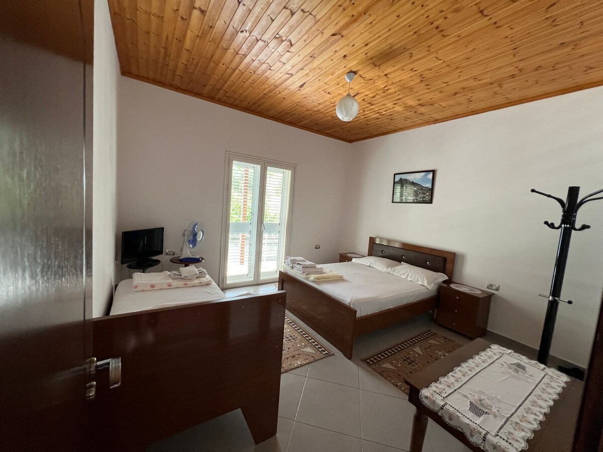 Villa Deart Berat – Phòng ba người có ban công