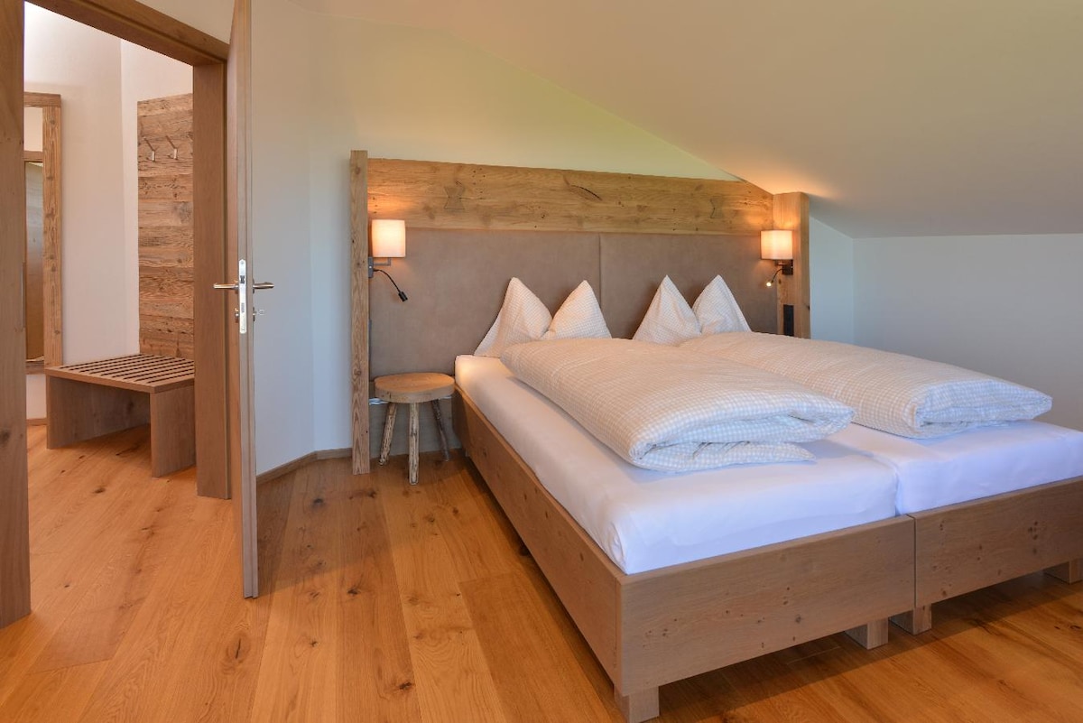 Trong Junior Suite với hạng mục hướng núi, bạn sẽ tìm thấy một căn hộ trên 30 m2 cho tối đa ba người với giường đôi cỡ king và một giường sofa đơn chất lượng cao. Căn hộ có bếp đầy đủ tiện nghi với khu vực tiếp khách ấm cúng, phòng tắm sang trọng với vòi sen quá khổ và máy giặt - máy sấy, và sân thượng rộng 10 m² với chỗ ngồi rộng rãi cho bữa sáng ngoài trời thịnh soạn với tầm nhìn tuyệt đẹp ra dãy núi Tyrolean.