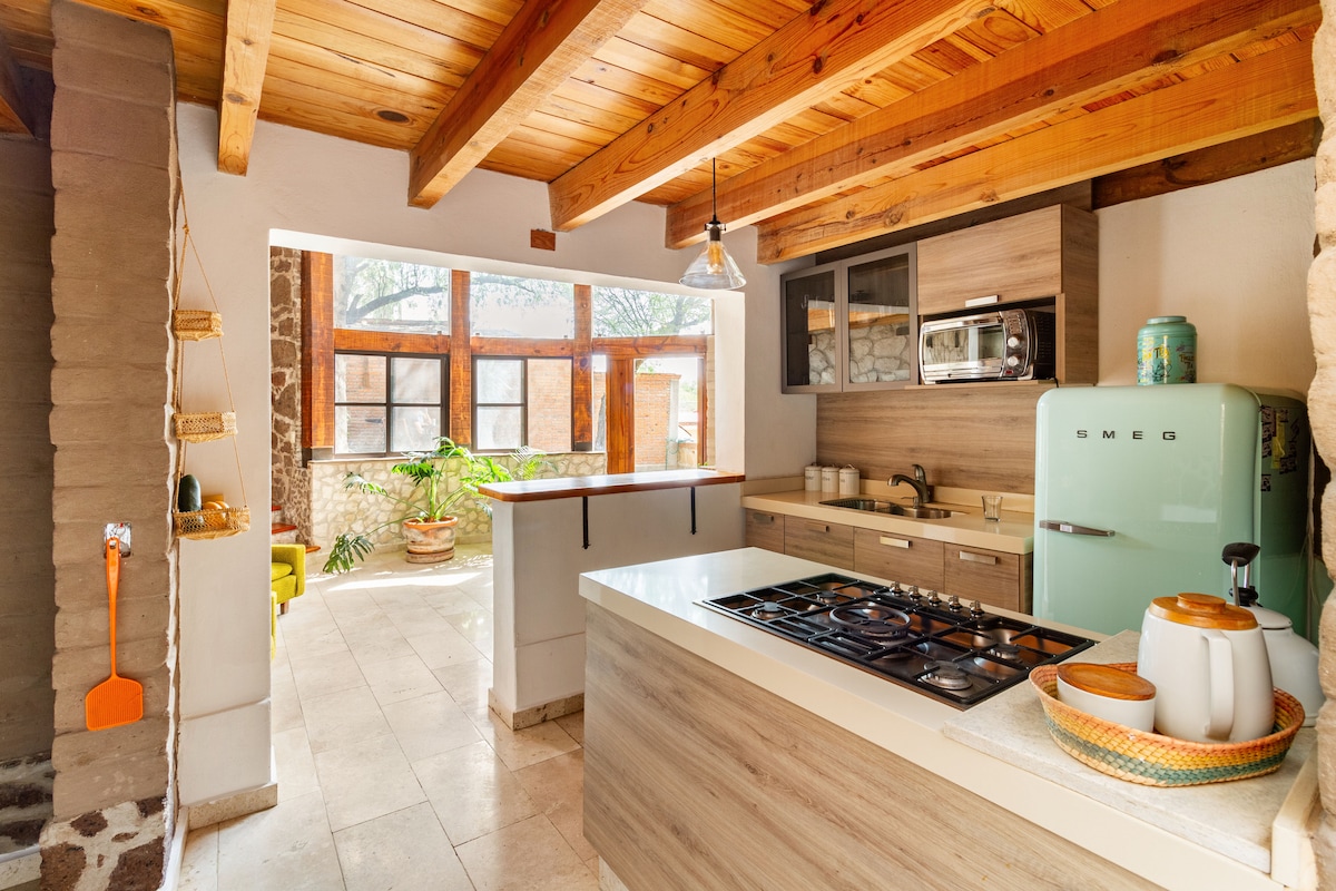 Đây là một cabin xây dựng sinh thái lý tưởng cho các cặp đôi, hoặc một gia đình, có một khu vườn, bên trong bạn sẽ tìm thấy kiến trúc gỗ và adobe ấm cúng, bạn sẽ khám phá cách tất cả các không gian được thiết kế để nghỉ ngơi và tận hưởng sự chung sống, nó nằm trong một khu phố điển hình của Mexico cách quảng trường chính 20 phút đi bộ. Một cabin đẹp được làm từ các vật liệu sinh thái, nó có một Khu vườn, Trong nội thất bạn sẽ tìm thấy cách mọi không gian được thiết kế để nghỉ ngơi
