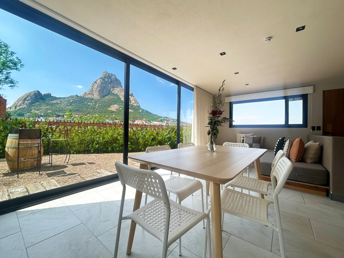 Nơi tốt nhất để lưu trú tại ngôi làng huyền diệu Bernal là căn hộ hai phòng ngủ xinh đẹp của chúng tôi. Nó có một thiết kế tối giản pha trộn các vật liệu và đặc điểm thực vật của khu vực để đạt được một bầu không khí dễ chịu sẽ luôn được đóng khung bởi Peña de Bernal, vì nó được định hướng để có tầm nhìn tốt nhất về nguyên khối. Chúng tôi đang ở trung tâm thành phố, nó hoàn hảo để đi bộ. Chúng tôi luôn có hệ thống giám sát và sân thượng tốt nhất.