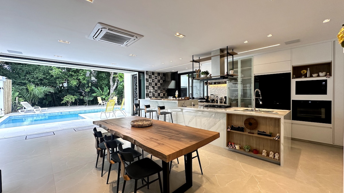 Casa Térrea Privativa! (Nhà riêng biệt) Chứa tối đa 15 khách, tầm nhìn ra núi và rất nhiều không gian cho gia đình và trẻ em 4 chân của bạn Khoảng cách từ nhà đến bãi biển là khoảng 4 km (2,5 dặm), nhưng bạn đỗ xe bên trong khu chung cư và sử dụng cầu đi bộ dẫn thẳng ra bãi biển. Lưu ý: Vui lòng đặt phòng theo số lượng khách (người lớn và trẻ em), giá thay đổi theo số lượng khách.