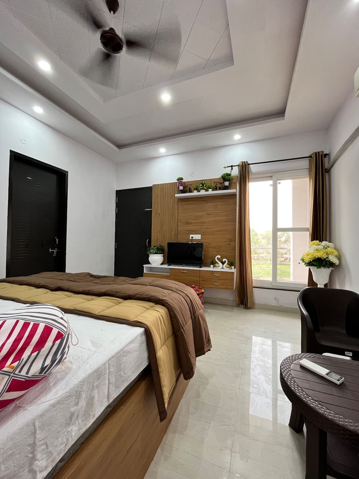 Khu nghỉ dưỡng gia đình Jaipur yên bình của bạn: Nr Chokhi Dhani! • 1BHK ấm cúng với thang máy, bãi đậu xe - an ninh 24×7 • Nhà đầy đủ tiện nghi với điều hòa, Wifi và TV thông minh • Ban công riêng có tầm nhìn ra quang cảnh cây xanh yên tĩnh • Nhà bếp mô-đun đầy đủ tiện nghi để nấu ăn tại nhà • Khu dân cư yên bình có cổng chỉ cách Chokhi Dhani 5 km • Hoàn hảo cho các cặp đôi, gia đình và khách đi công tác • Dễ dàng lái xe đến Cung điện Thành phố, Pháo đài Amer & Birla Mandir • Cách sân bay 16 km, cách ga tàu 24 km Sự thoải mái, êm ả & quyến rũ của Jaipur, tất cả trong một kỳ lưu trú!