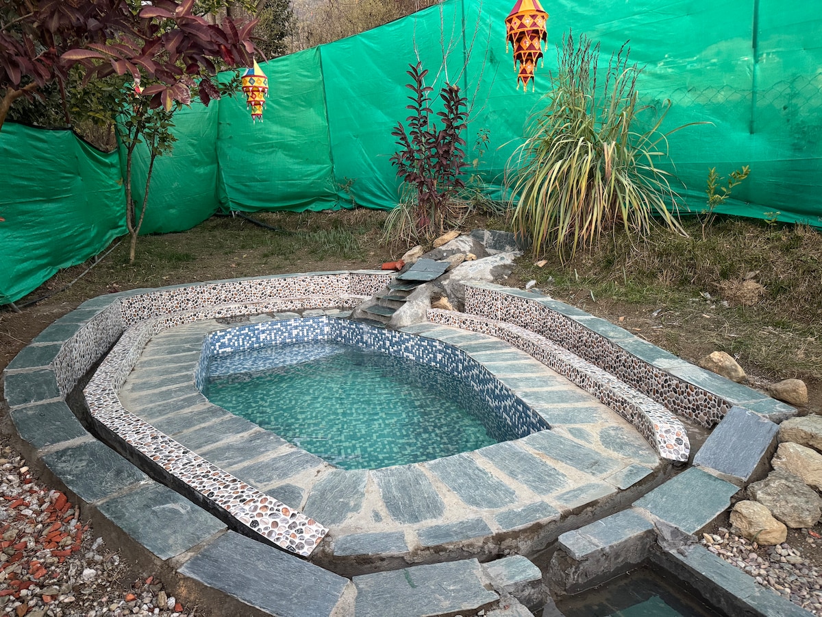 DRV Villa ◆ Pvt 2BHK Bohemian Farm Villa in Bir Billing ◆ 4-side open property with expansive private garden ◆ Mountain & garden views from bedrooms ◆ Private plunge pool (12 ft x 5 ft | 3 ft depth) ◆ Bonfire area & large front ground for games & gatherings ◆ Peaceful location – away from tourist crowd ◆ Fast Wi-Fi (50 Mbps) ideal for remote work ◆ Bir Landing Site – 6 km ◆ Near Dzongsar Monastery & Paragliding Point ◆ Barot Valley – 45 km Perfect for couples, families, groups & remote workers