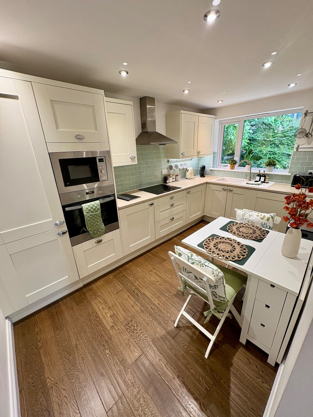 Enjoy a stylish experience in this centrally-located village home in the heart of the Exe Valley. 1 Allocated parking space, plus parking in village square. Short distance (7 miles) to Exeter & Tiverton. Exmoor & Dartmoor (45 mins drive). Travel cot available charge of £20 (incl, bedding and linen) High chair available. Tea selection, coffee, cereals, bread, milk, (non dairy powder alternative) butter, bacon, eggs , jams, all provided. Please notify of any dietary restrictions in advance.