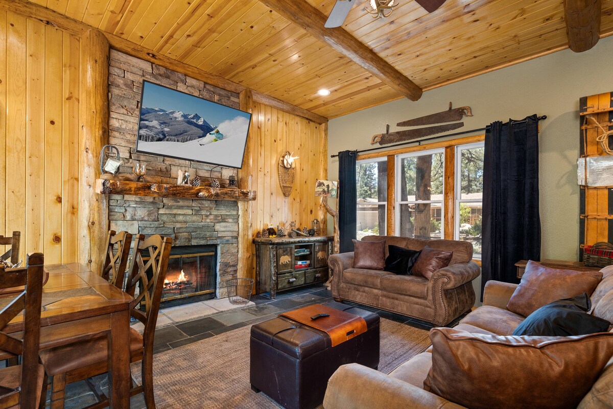 Chào mừng bạn đến với 99 Pines Retreat! Chỉ cách Snow Summit Ski Resort 2 dãy nhà - khu nghỉ dưỡng 3 phòng ngủ 2,5 phòng tắm 1500 feet vuông này là hoàn hảo cho chuyến đi tiếp theo của bạn. Thư giãn trong bồn tắm nước nóng sau một ngày trên dốc hoặc đạp chân lên và tận hưởng hoàng hôn tuyệt đẹp bên cạnh hố lửa bên ngoài trên boong. Ngôi nhà này tự hào là phòng chơi của riêng mình với màn hình phẳng 55"hoàn chỉnh với bàn cầu lông riêng. Một khu vực phòng khách rộng mở với lò sưởi, ngôi nhà này thực sự có mọi thứ bạn cần.