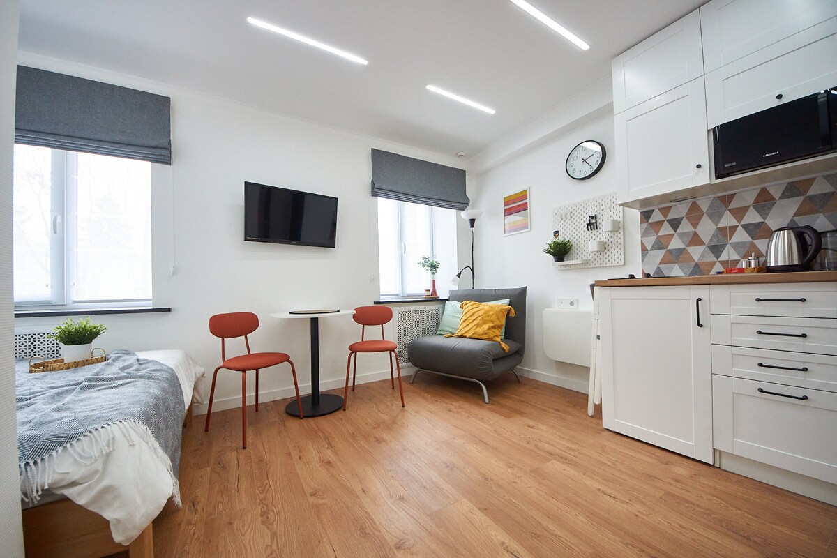 Căn hộ studio ấm cúng và mới cải tạo, không được chia sẻ với chủ nhà. Nằm gần trung tâm thành phố. Nó có mọi thứ bạn cần cho một kỳ nghỉ và cuộc sống thoải mái. Có gì gần đó? - Siêu thị (chợ 24/24) và hiệu thuốc - 3 phút đi bộ - Chi nhánh của PrivatBank - 7 phút - Central City Bazaar - 10 phút - Trung tâm thành phố - 20 phút - Bệnh viện Trẻ em Khu vực - 10 phút Đỗ xe miễn phí trước nhà.