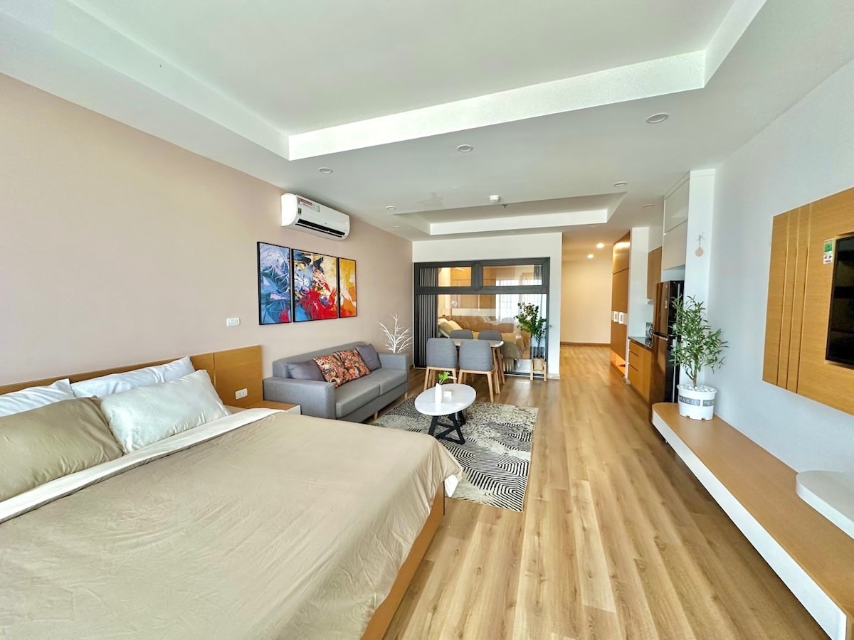 The entire Exquisite Studio at FLC Sea Tower - Easy Walk to The Beach, Quy Nhon city center --- with full facilities in modern style, right in front of the beach just 3 minutes walk. This building has the best location in Quy Nhon. It only takes a few minutes to walk to the central beach of the city. There are many delicious and cheap local restaurants around the building within walking distance!!! Balcony with beautiful sea and city view ~