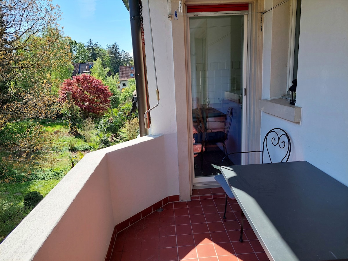 Căn hộ 1 phòng ngủ riêng với nhà bếp nhỏ và phòng tắm với vòi sen và máy giặt. Wifi6 tốc độ cao miễn phí và một khu vườn chung với hiên và lò sưởi. Căn hộ cách ga tàu chính 5 phút và cách xe điện số 6 số 6 1 phút, dẫn thẳng đến quảng trường exibition. Nó cũng gần Sở thú và ngay bên cạnh một công viên lớn. Cũng bao gồm trong giá là "BaselCard", với phương tiện giao thông công cộng miễn phí và bảo tàng/vườn thú được giảm giá 50%.