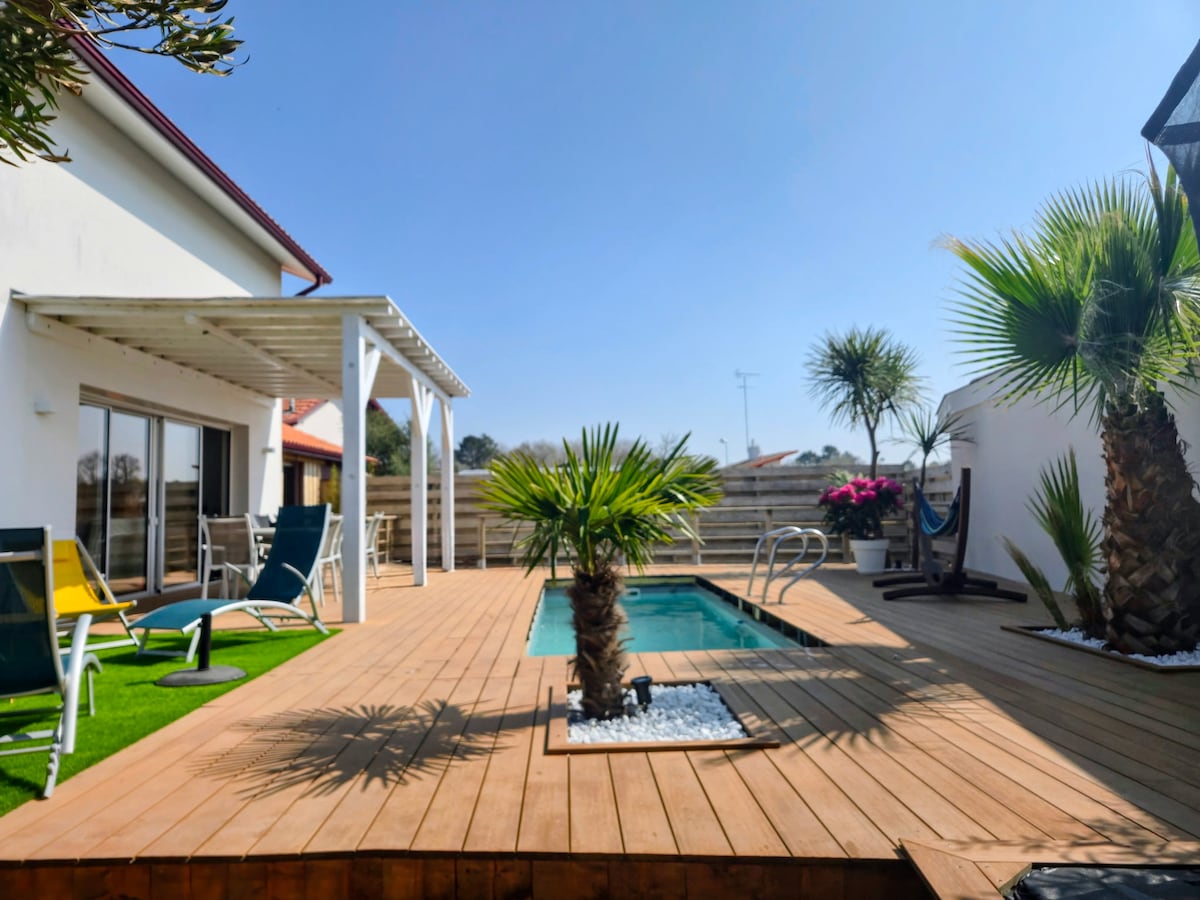 Nhà, hồ bơi, thiên nhiên và bãi biển Landaise.