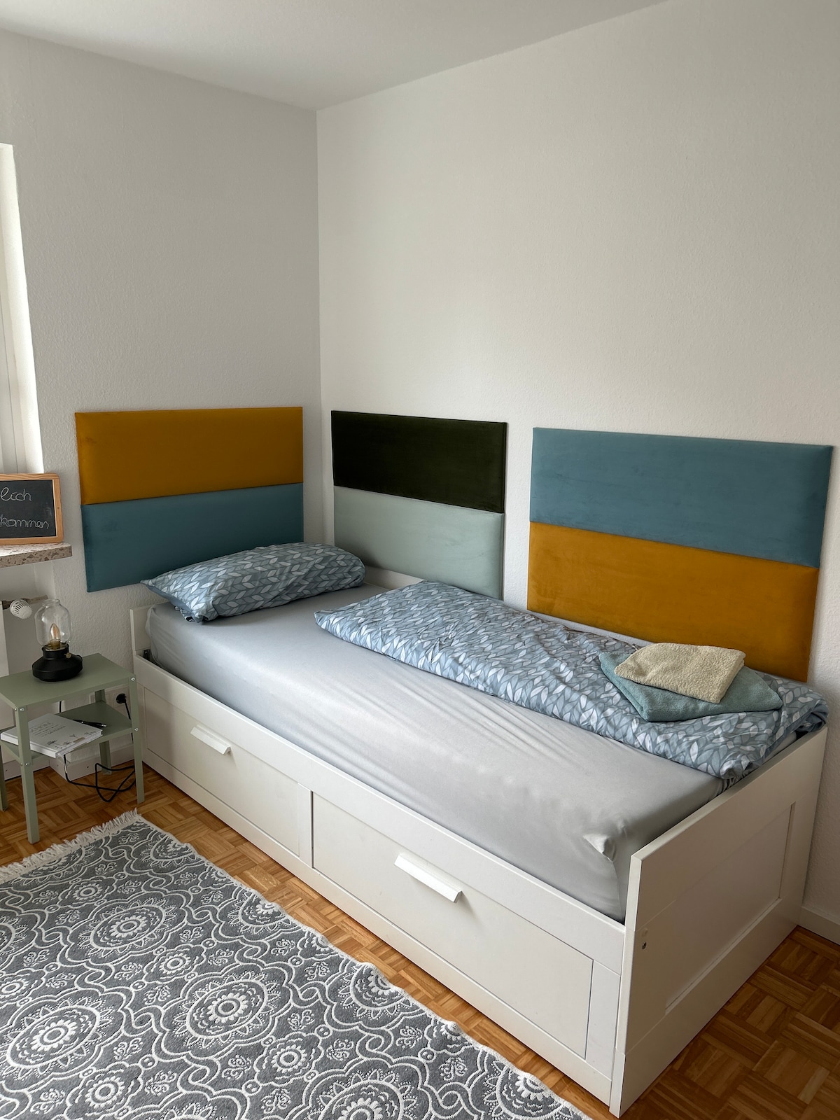1 phòng ngủ rock'n'roll với bìa đĩa và một buổi hòa nhạc yêu cầu nhờ Alexa. 1 phòng Star Wars. 1 phòng bình thường. Giường: hai 1,80 x 2,00m. Ba lần 1,40 x 2,00m. Căn hộ của bạn nằm ở Mahlberg bình dị, cách xa giao thông. Bạn đỗ xe ngay trước ngôi nhà nửa gỗ với cửa chớp màu xanh lá cây. Europapark Rust chỉ cách đó 10 phút đi xe hơi. Nước Pháp ở ngay gần đó. Lò sưởi mang đến cho bạn một buổi tối ấm cúng vào những ngày mát mẻ.