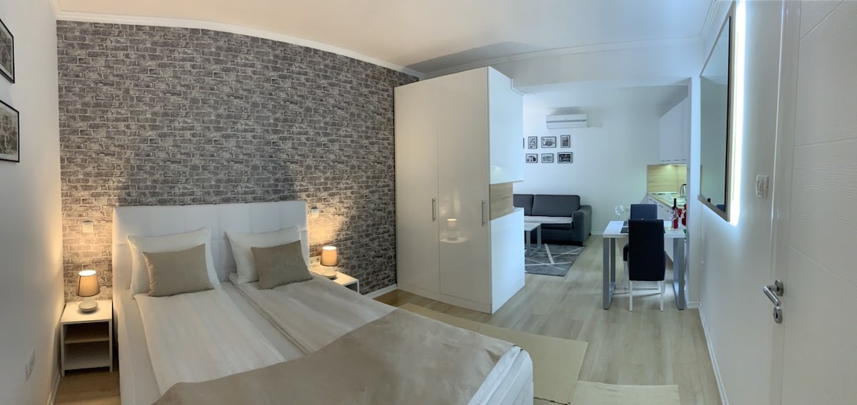 Tận hưởng trải nghiệm phong cách tại địa điểm nằm ở trung tâm này trong tòa nhà hoàn toàn mới. Căn hộ bao gồm một phòng ngủ sáng sủa với giường cỡ king thoải mái, bàn ăn cho 4 người và nhà bếp đầy đủ tiện nghi hiện đại. Phòng khách có ánh nắng mặt trời với TV thông minh. Góc kéo ra trong phòng khách cũng có thể phục vụ như một giường bổ sung cho 2 khách nữa. Toàn bộ căn hộ được thiết kế bởi kiến trúc sư (Adil Glavovic - axisarchiteture)