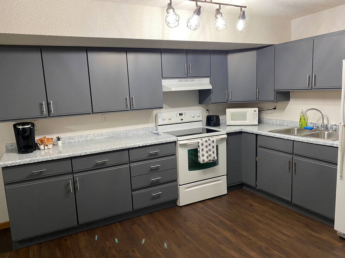 Tận hưởng trang trí và thiết kế hiện đại trong khung cảnh ấm cúng của căn hộ hai phòng ngủ, phù hợp với gia đình này. Căn hộ hai tầng cấp thấp hơn này hoàn hảo cho bất kỳ loại hình nghỉ dưỡng nào. Bạn sẽ có toàn bộ căn hộ cho riêng mình bao gồm một lối vào riêng, một nhà bếp được trang bị đầy đủ tiện nghi, internet cáp quang và giặt ủi. Pack n play và ghế ăn cho trẻ em cũng được cung cấp theo yêu cầu. Xin lưu ý rằng phòng tắm và phòng khách thứ hai nằm ở hai tầng riêng biệt, cách nhau 7 bước. Chỉ cách Khu liên hợp thể thao Caswell vài phút.