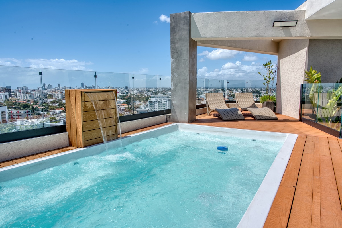 Your luxury oasis 13 minutes from the Colonial Zone! ✨ Relax in your private Jacuzzi or enjoy a BBQ on the exclusive terrace. Designed for rest and productivity: • 🛏 Premium King Bed. • ❄️ Total A/C and fast Wi-Fi (ideal Home Office). • 🍳 Full kitchen and Smart TV. • 🚗 Private and secure parking. Strategic location: close to supermarkets and restaurants. Perfect for digital nomads, couples or long stays. Book your experience today! 🥂
