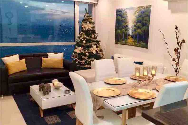 Căn hộ tiện nghi và sang trọng ở tầng 33, với tầm nhìn tuyệt đẹp ra vịnh Cartagena. Các nhà hàng, trung tâm thương mại, siêu thị gần đó, cách bãi biển vài dãy nhà và chỉ cách trung tâm lịch sử của Cartagena 5 phút (bằng ô tô). Được trang bị nội thất và thiết bị hoàn toàn mới, để bạn cảm thấy như đang ở nhà. Tòa nhà có hồ bơi, bể sục, phòng tập thể dục, phòng xông hơi khô, 4 thang máy, bãi đỗ xe và bàn chơi bóng bàn