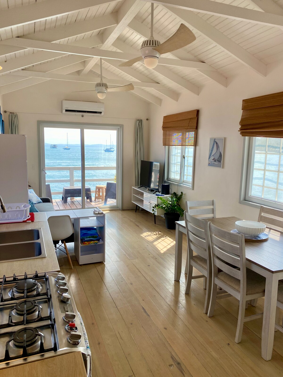 Cách bãi biển chưa đầy 100 m, đây là một lựa chọn tuyệt vời cho các nhóm nhỏ hoặc cặp đôi đang tìm kiếm một nơi ẩn náu lãng mạn. Với nhà bếp đầy đủ tiện nghi, khu vực ăn uống, bàn làm việc, ban công và không gian sống với TV và Netflix, bạn sẽ cảm thấy như đang ở nhà trong rừng. Phòng ngủ chính có nệm Queen 14" Wellsville Latex Hybrid, điều hòa nhiệt độ và quạt trần. Phòng ngủ thứ hai có giường đầy đủ và quạt trần. Giường Queen nằm ở tầng lửng phía trên, có quạt sàn. Phòng tắm nằm ở tầng chính với vòi sen nước mưa.
