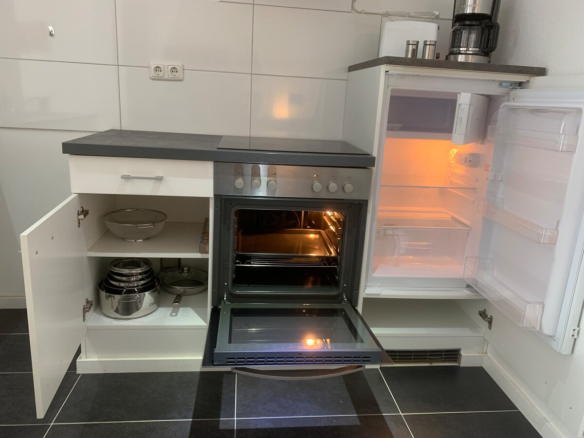 Studio 34 qm, Wohnraum mit Küche, Schlafzimmer. Das Zentrum von Zetel mit Einkaufsmöglichkeiten, Bäckereien, Metzgerei, Restaurants ist in 10 Minuten fußläufig zu erreichen. Zetel ist mitten im Naturerlebnis Südliches Friesland nahe der Nordsee gelegen und bietet erholsame Tage in der wunderschönen Vielfalt zwischen Wald und Meer.