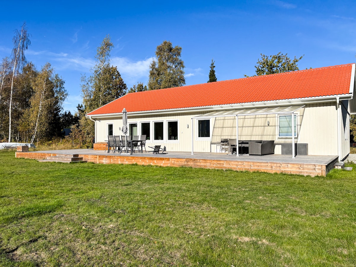 Helrenoverad stuga på stor tomt med väldigt privat läge nära Löttorp, flera badplatser och golfbanor. Stugan har både altan under tak med matplats och stor grill samt stor innergård med finns matgrupp, loungegrupp, solstolar samt bubbelpool (spabad) för 6 personer. Det finns 2 sovrum och upp till 5 sovplatser (bäddsoffa). Det finns spjälsäng samt barnstol till våra yngsta gäster. Köket är fullt utrustat och det finns tvättmaskin i badrummet. Sänglinne och handdukar ingår samt slutstädning.