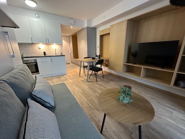 Chỗ ở ấm cúng và yên bình, nơi có vị trí gần trung tâm thành phố, nhưng đồng thời hơi tách biệt với tiếng ồn trung tâm thành phố. Đi bộ một quãng ngắn dọc theo lối đi dạo sẽ đưa bạn qua rất nhiều nhà hàng và cuộc sống về đêm trên đường đến trung tâm thành phố. Ở đây bạn sẽ tìm thấy một trung tâm mua sắm, thư viện, phòng hòa nhạc và hầu hết những gì thành phố cung cấp. Căn hộ được trang bị khái niệm Sống nhỏ gọn, với giường tủ quần áo thiết thực và bàn bếp có thể dễ dàng kéo ra nếu cần Cách sân bay 400 m Cách cửa hàng tạp hóa 600 m