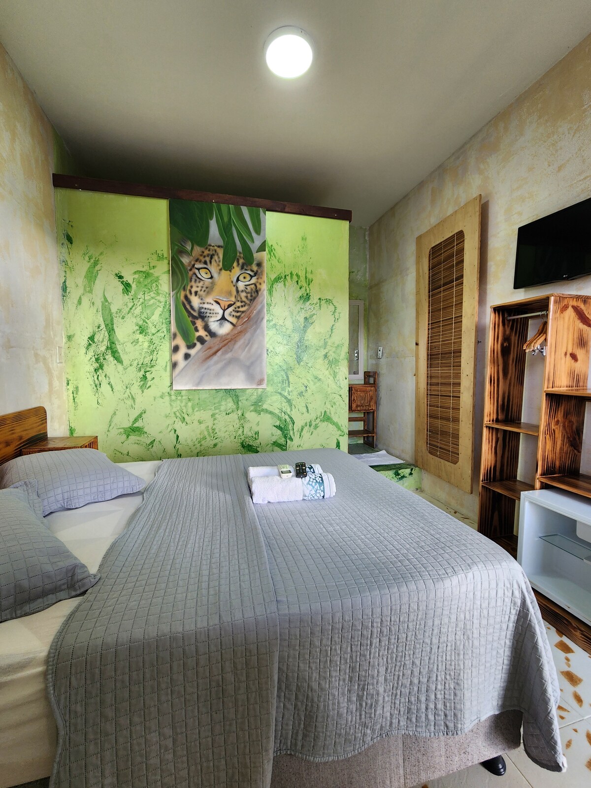 Uma kitnet nova, um quarto com cozinha e banheiro privativo com vista para a mata. Com uma cama de casal e podemos adicionar outra de solteiro! O quarto é com vista para a mata.