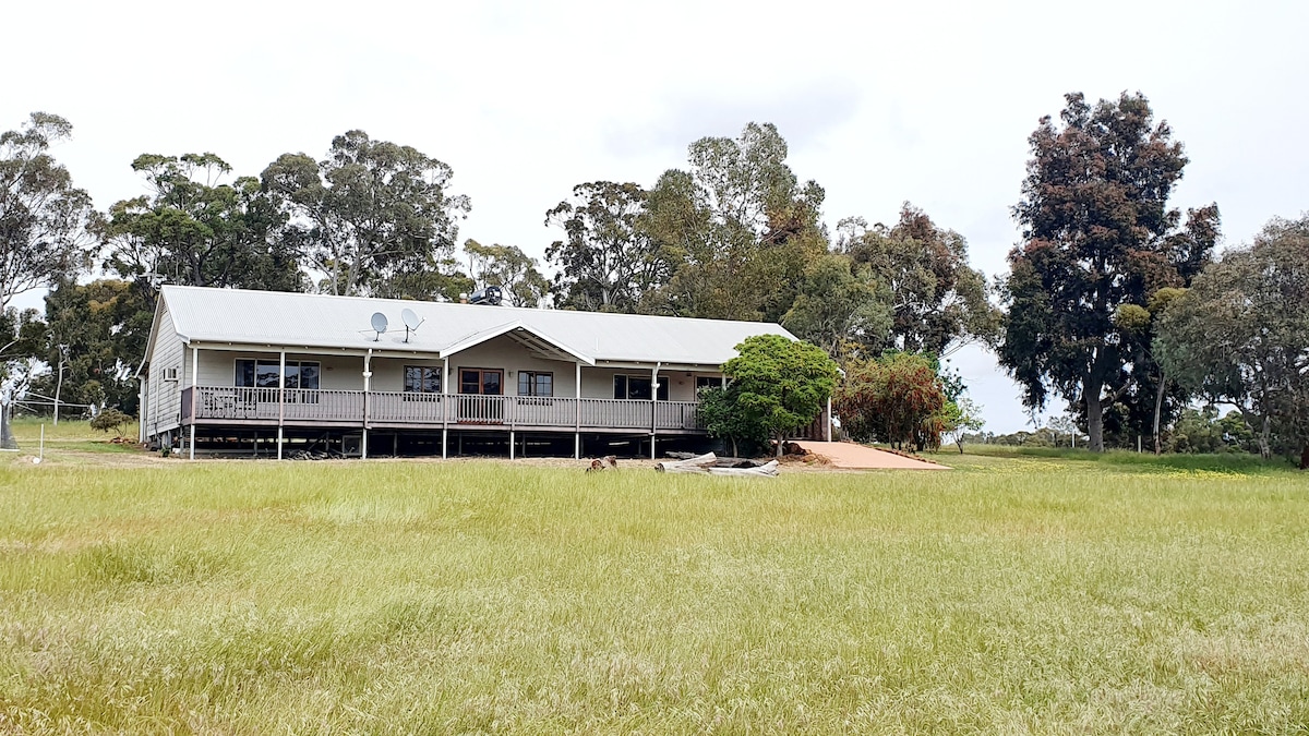 UNSURPASSED TRANQUILITY! Luxurious 6 bedroom, 2 bathroom farm stay, private pool , 50 minute drive from Perth CBD. Overlooking Avon Valley with 55 acres of land for up to two families to hike, fish, swim, cycle or relax on the deck overlooking the Valley. Fully equipped kitchen, large sitting lounge and stunning dining room with crafted barn doors, enclosed backyard adjoining BBQ/alfresco. In winter ,enjoy waterfalls, in-house log fire. View farm, indigenous animals and prolific bird life.