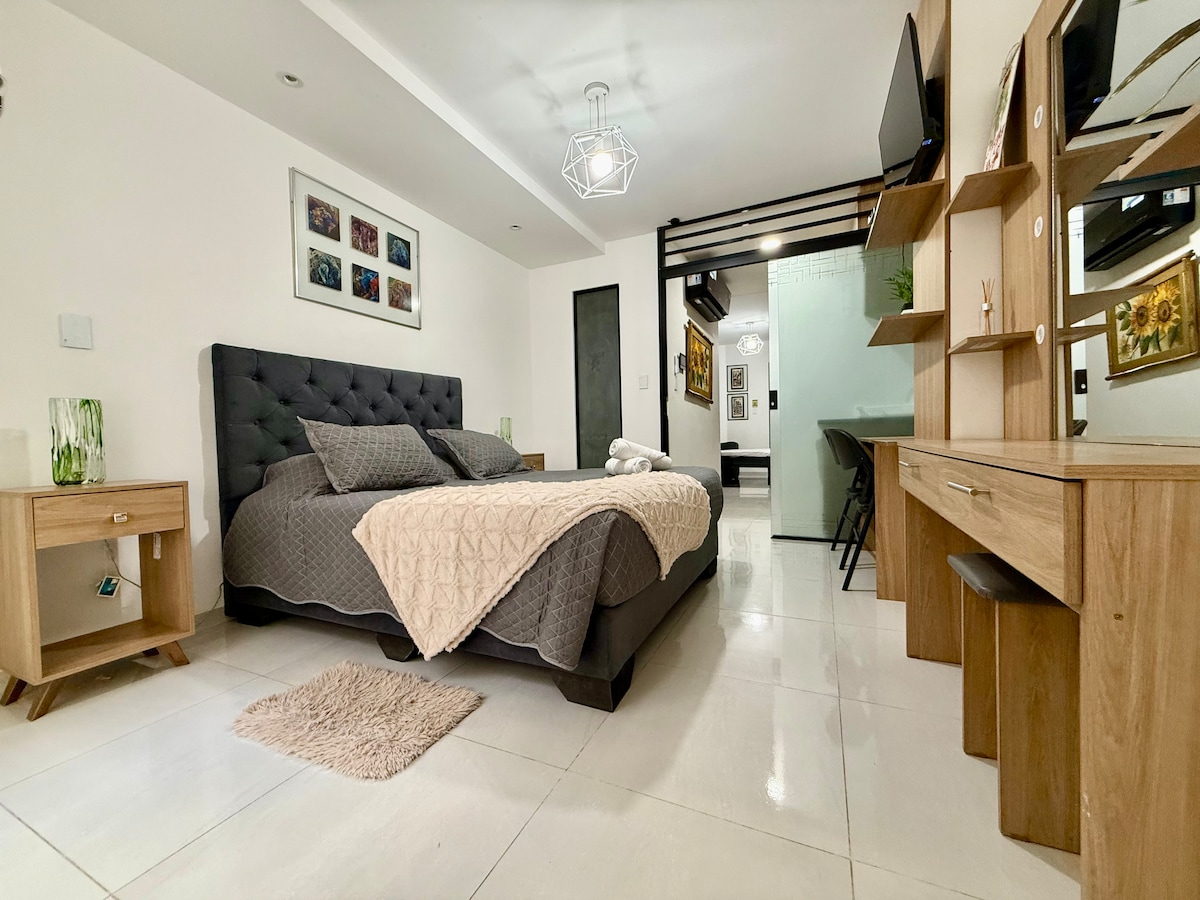 Estudio de lujo ubicado en el exclusivo Sky Elite, ofrece un espacio tranquilo y elegante. Con muchas comodidades, es perfecto para una estancia de placer y/o negocios, a metros de Av. San Martín con cafeterías, comercios, bares, restaurantes, tiendas, hoteles, Western U Cuenta con cama para 2, sofà cama, cocina, baño privado, walking closet, TV smart, A/C, amenities incluyen sala de juegos con billar, cine, churrasqueras, business center, cowork, gym, piscina, sauna seco, a vapor y jacuzzi