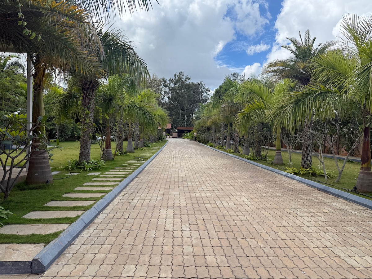 Khám phá EL Palm House: một ốc đảo yên tĩnh gần trung tâm CNTT của thành phố. Cách công viên RGA Tech 10 phút. Cách RMZ Eco World 15 phút. Ngôi nhà độc lập này với bố cục thanh bình có bãi cỏ tươi tốt, sân sau, bể ngâm, bếp đầy đủ tiện nghi. KHU VỰC TẮM VÒI SEN NGOÀI TRỜI (có mái che nhưng ngoài trời) Nắm bắt sự rung cảm nhiệt đới được bao quanh bởi cây cọ. Trải nghiệm sự hài hòa của cuộc sống thành phố và thiên nhiên tại EL Palm House, nơi mỗi khoảnh khắc là một lời mời để thư giãn và trẻ hóa.