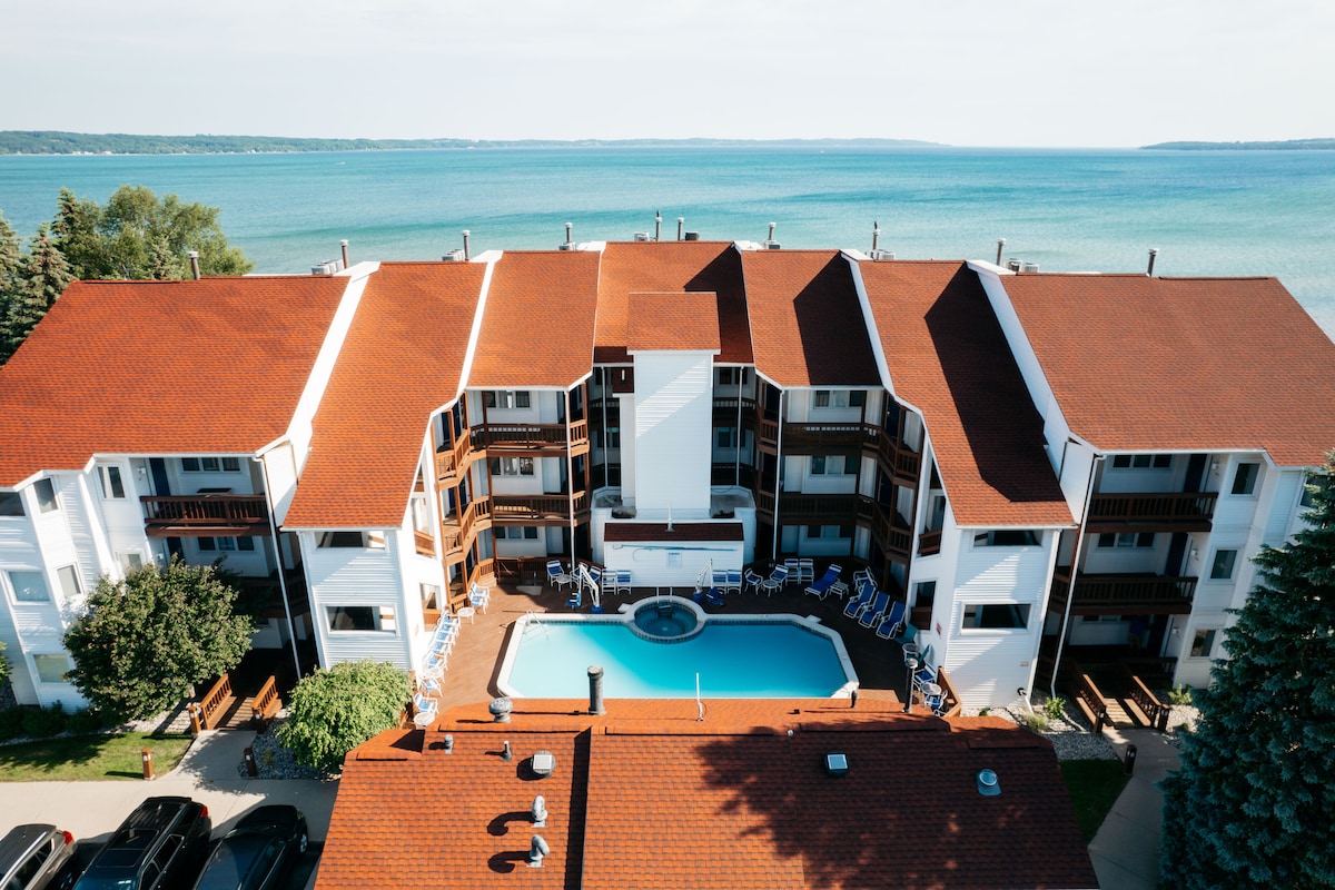 7 phút đến Lễ hội cưỡi ngựa! Nằm trên Vịnh Đông xinh đẹp của Thành phố Traverse, điều này vừa được tu sửa hoàn toàn. Condo nằm ngay trên mặt nước! Cách trung tâm thành phố Traverse City, nhà máy rượu vang vài phút và nhiều hơn thế nữa. Tận hưởng cảm giác thư giãn dưới ánh nắng mặt tiền bãi biển riêng dài 600ft hoặc thuê thuyền kayak, ván trượt nước hoặc ván chèo. Căn hộ theo phong cách studio này là một căn hộ cuối với tầm nhìn tuyệt đẹp ra vịnh. Căn hộ chung cư này có vòi sen tuyệt vời với đầu mưa và 3 bình xịt cơ thể!
