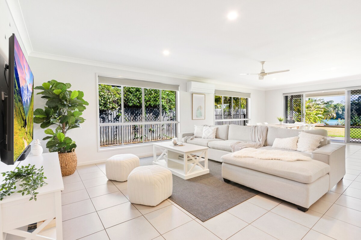Hãy thư giãn và nghỉ ngơi tại chỗ ở ven biển yên tĩnh, phong cách này. Bốn phòng ngủ, hai phòng tắm, trên hai tầng. Hoàn hảo cho hai gia đình có không gian riêng. Giữa các tầng có 4 bậc thang. Ranh giới phía Đông của chúng tôi là Great Sandy Straits. Cửa ngõ đến Đảo Fraser (K'gari) và một trong những nơi tốt nhất thế giới để ngắm cá voi lưng gù. Tháng 7/ tháng 10. Tận hưởng lò sưởi & nước trong xanh tuyệt đẹp. Ánh đèn từ bến thuyền. Có rất nhiều phòng cho thuyền hoặc xe bổ sung của bạn. Chúng tôi hoan nghênh công nhân.