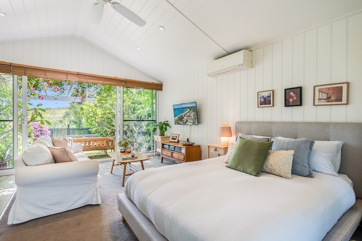 Discover a tranquil hideaway in this ultimate boutique hotel experience. Amid a rural scene of lush green hills, fall asleep to the tree frogs croaking and wake up to the birds singing. Relax, unwind and enjoy complete privacy and stillness at Bangalow Vista. Watch the sunset over the hills from the living room or small outdoor courtyard. If you would like access to the pool you will need to book via our other listing: airbnb.com/h/bangalowvista-with-pool